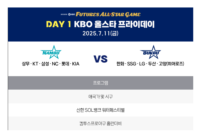 - 18:00 : 퓨처스 올스타전 (남부 vs 북부)