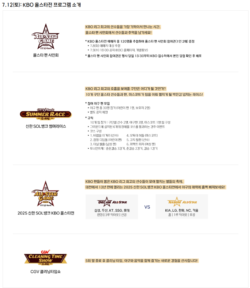📅 2025 KBO 올스타전 일정 요약
