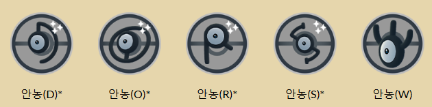 ※ 안농은 포켓몬의 알파벳 형태를 가진 특별한 포켓몬입니다.