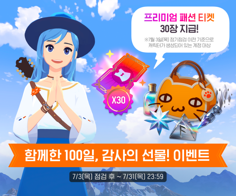 7월 3일 점검 이전 캐릭터 생성 계정 대상, 서버별로 프리미엄 패션 티켓 30개 지급