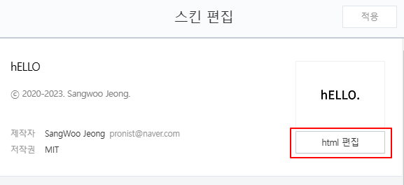 스킨 편집 화면에서 우측에 보면 html 편집 버튼이 있다.