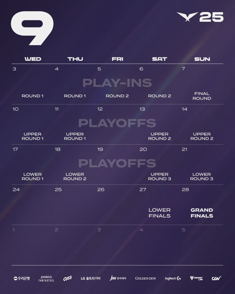 | 플레이-인 | 9월 3일 ~ 9월 7일 |