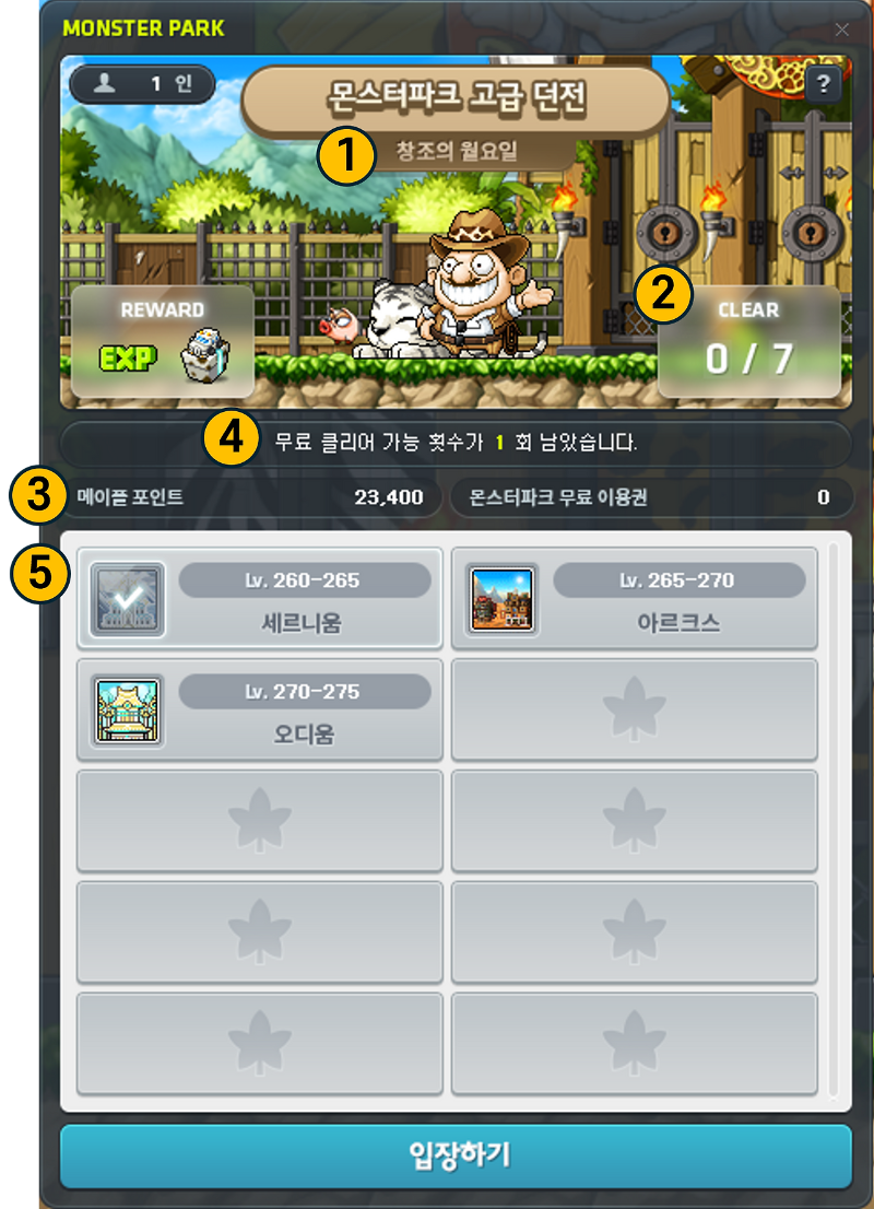 - 메이플포인트가 부족하면 입장 불가