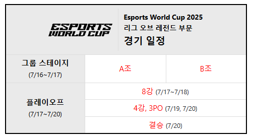 EWC 2025 롤 LCK 일정, 참가팀, 진행방식 총정리(T1 경기 일정)