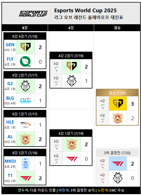 - 8강과 4강은 Bo3(3판 2선승제), 결승은 Bo5(5판 3선승제)