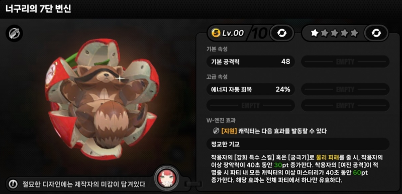 - 강화 특수 스킬 / 궁극기 명중 시, 팀 전체에게 너구리의 소원 효과 부여