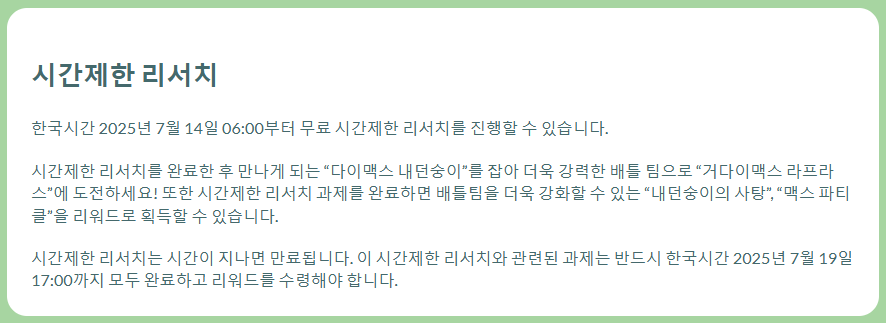 - 주의: 이벤트 종료 시 미완료 리서치는 사라짐