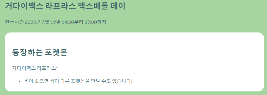 포켓몬고 거다이맥스 라프라스의 맥스배틀 데이