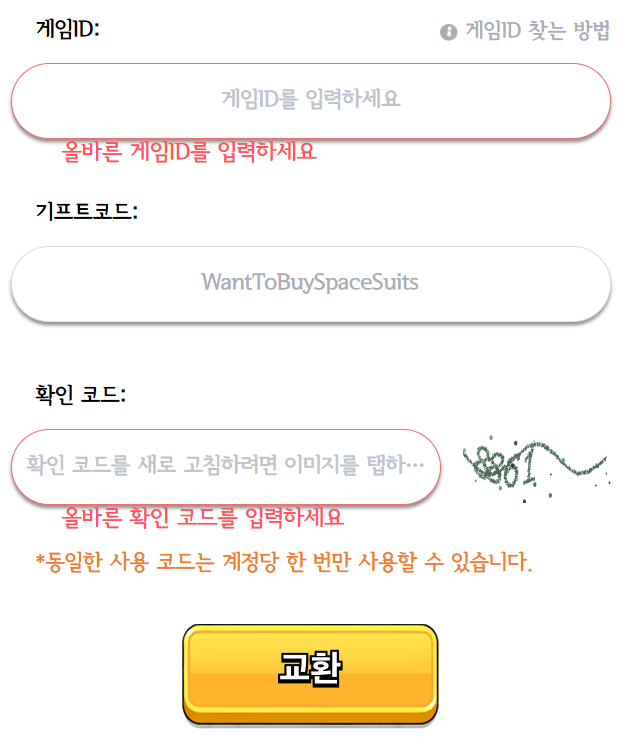 따라서 공식 쿠폰 입력 웹페이지를 이용해야 해요.