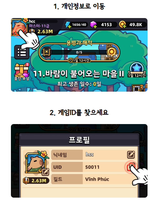 - 게임 실행 후 왼쪽 상단 캐릭터 아이콘 클릭