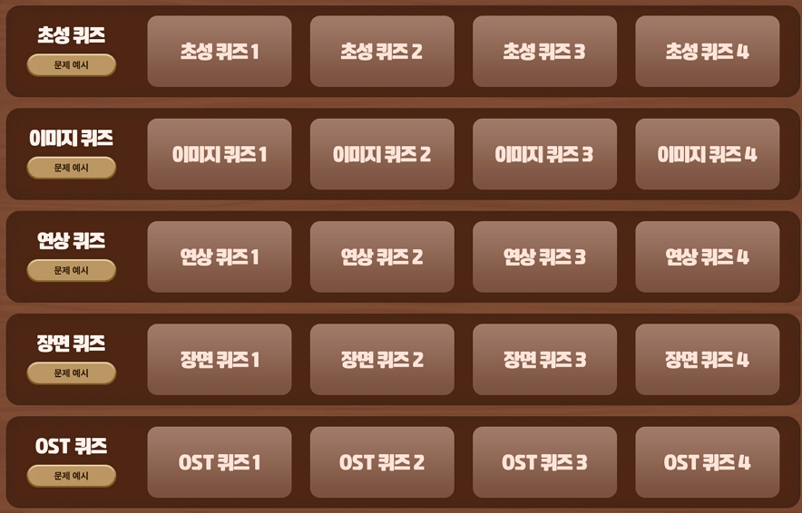 - 특히 OST 퀴즈와 장면 퀴즈는 헷갈릴 수 있으니 표를 참고하세요.
