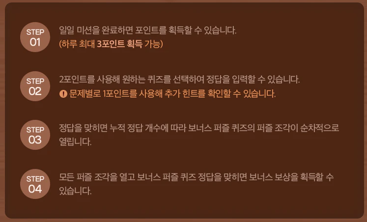 STEP 5 : 모든 퍼즐 조각을 열고 보너스 퀴즈 정답을 맞히면 추가 보상 획득