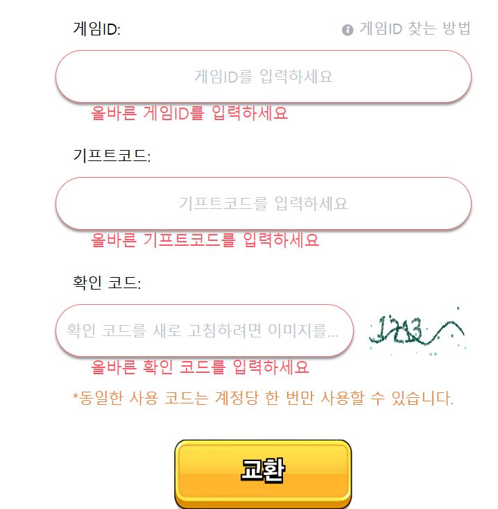 쿠폰 입력 전에 게임 ID를 확인해야 합니다.