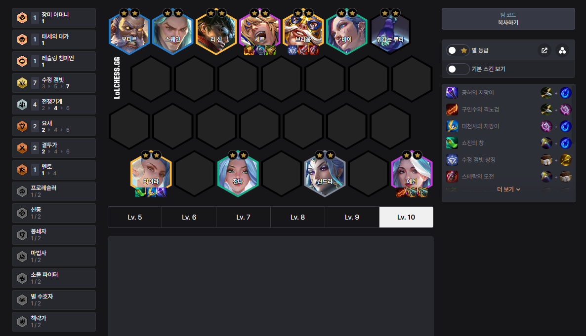 - 여유 골드: 10레벨