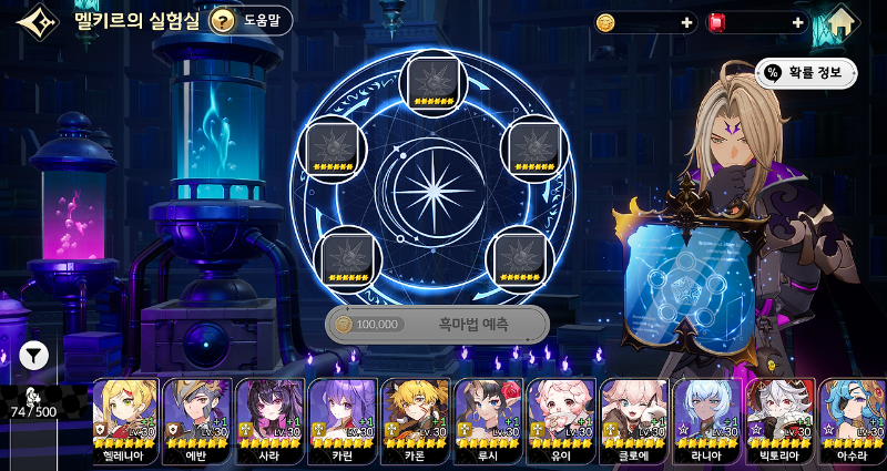 멜키르 실험실은 영웅 합성을 통해 신규 영웅을 획득할 수 있는 콘텐츠입니다.