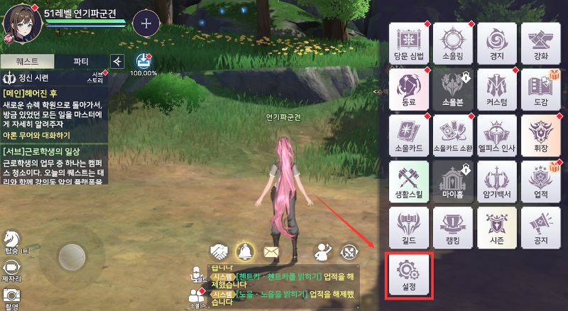 1️⃣ 게임 접속 → 화면 우측 하단의 설정 버튼(톱니바퀴 아이콘) 클릭