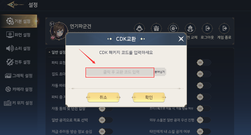 쿠폰 등록은 게임 내 메뉴에서 간단하게 진행할 수 있습니다.