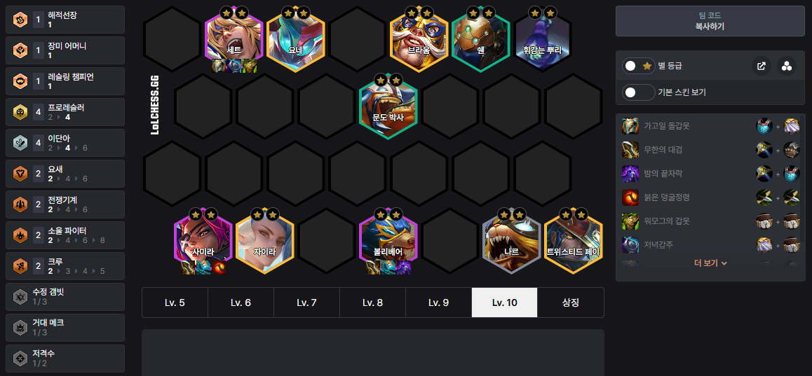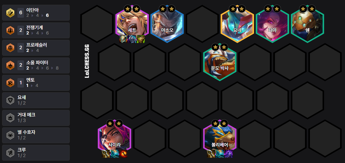 또한 8레벨에서 브라움 대신 요네를 확보하면, 자야와 함께 6이단아 시너지를 발동할 수 있습니다.