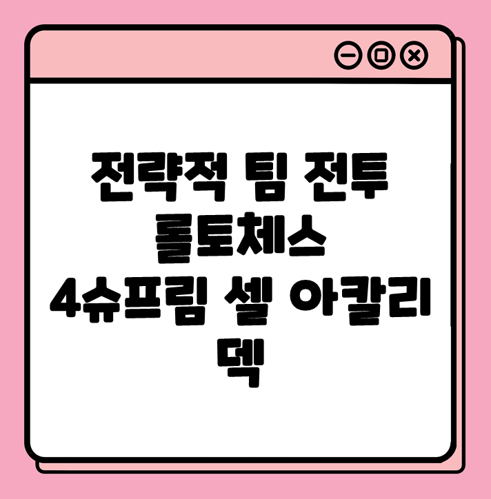 롤토체스(전략적 팀 전투)에서 아칼리를 중심으로 한 4슈프림 셀 덱은 강력한 후반 캐리력을 가진 조합으로 평가받고 있습니다.