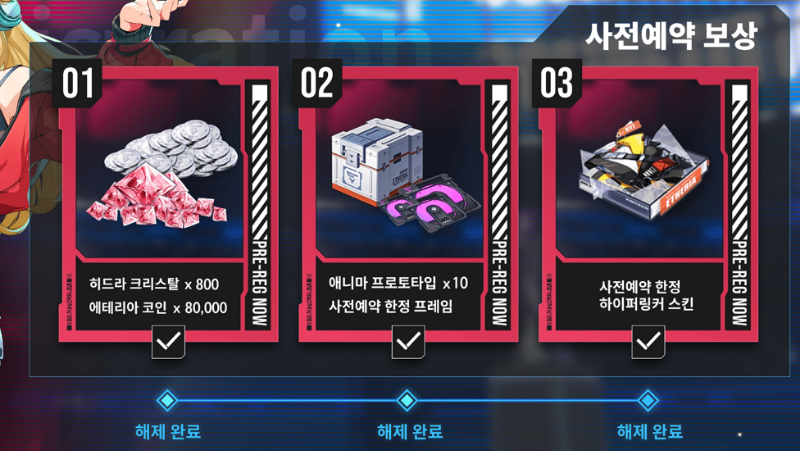 - 사전예약 보상으로 핵심 재화와 한정 스킨 제공