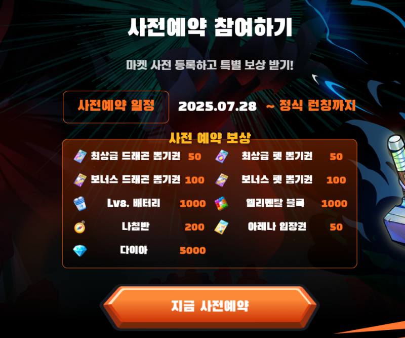 사전예약은 누구나 무료로 참여할 수 있으며, 정식 런칭 시 특별 보상을 받을 수 있습니다.