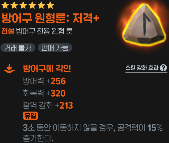 - 효과: 같은 명칭의 기존 룬과 고유 효과는 동일하지만, 기본 능력치가 더 높음
