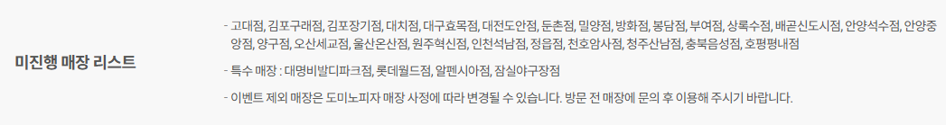 이벤트 제외 매장은 도미노피자 매장 사정에 따라 변경될 수 있습니다.