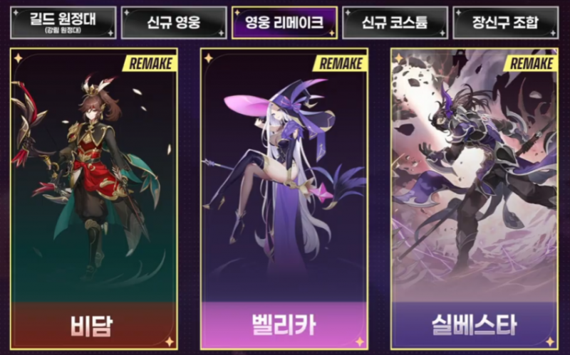 - 비담, 벨리카, 실베스타가 리메이크 대상