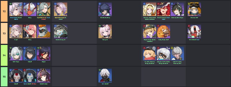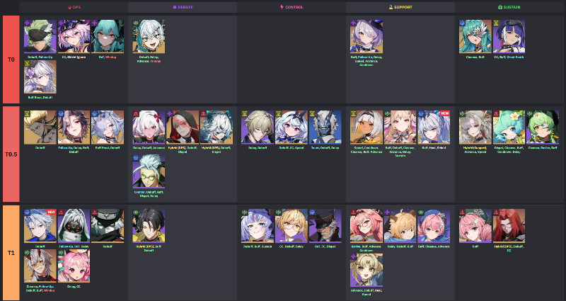 - 1티어는 디팅, 릴리암, 사니아, 예리, 클로스, 릴리, 링루오, 발레리안