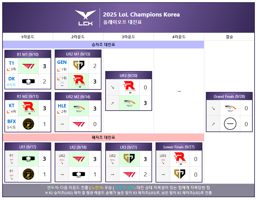 🏟️ LCK 플레이오프 일정 (9월 10일 ~ 9월 28일)