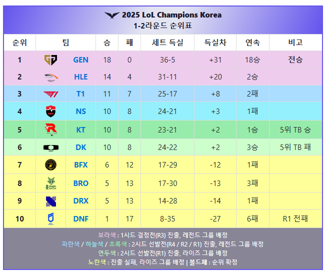 이번 글에서는 정규 시즌 순위 정리부터 플레이-인, 플레이오프 구조, 그리고 T1의 월즈(롤드컵) 진출 시나리오까지 한눈에 볼 수 있도록 정리해드리겠습니다.