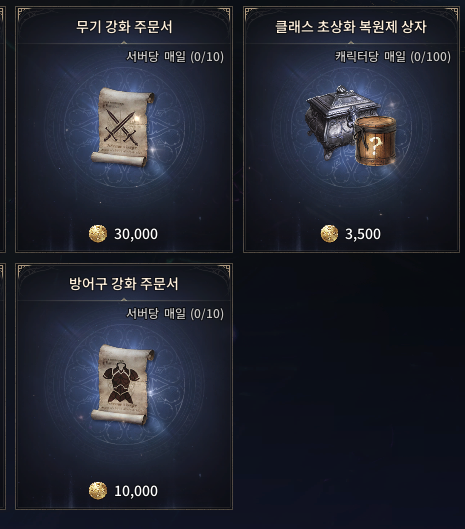 - 상점 교환 (골드 상품, 복원제 필수 구매)