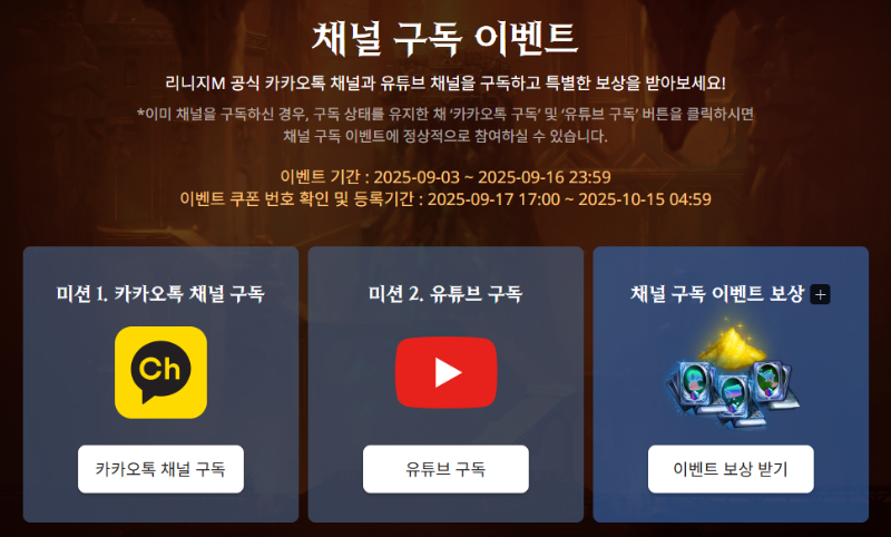 👉 채널 이벤트 보상 쿠폰도 10월 15일 오전 4시 59분까지 등록할 수 있으니, 놓치지 말고 챙기세요.