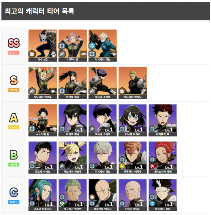 🏆 괴수 8호 THE GAME 캐릭터 티어표