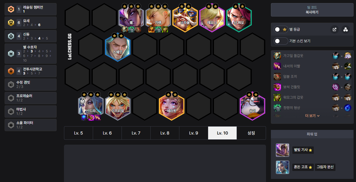 - 1코스트 챔피언 3성작 후: 6레벨