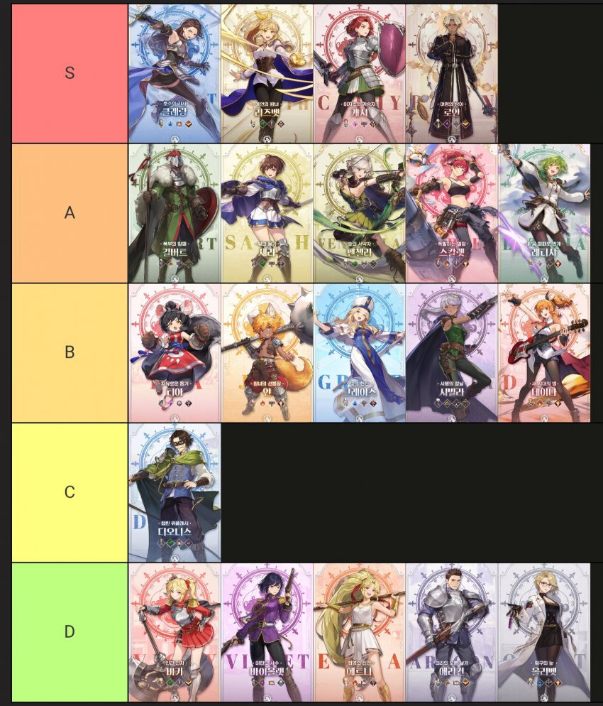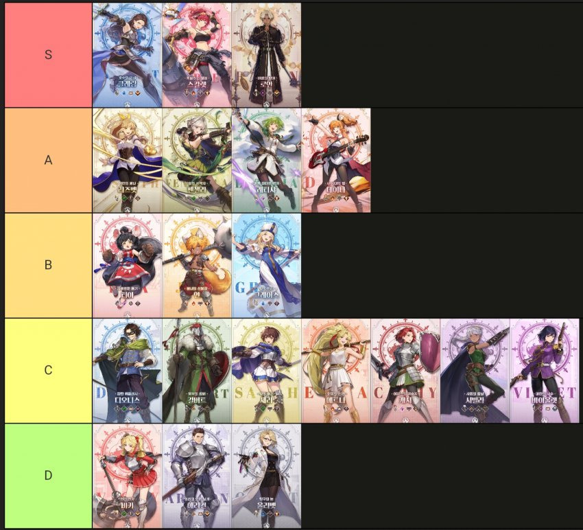 티어표는 게임 내 캐릭터를 성능 순위별로 나눈 평가표입니다.