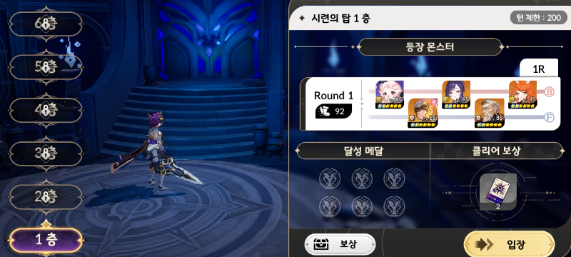 각 층을 클리어하면 메달을 획득할 수 있고, 누적 메달 수에 따라 추가 보상이 주어집니다.