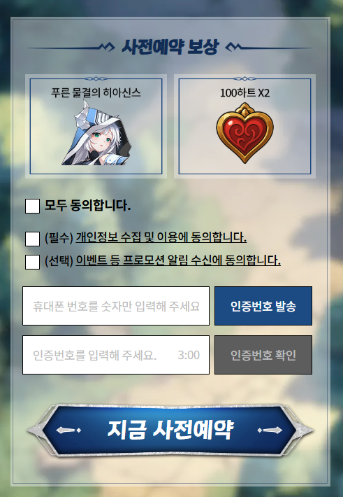 - 모든 사전예약 보상은 정식 출시 후 7일 이내 접속 시 우편함으로 지급됩니다.