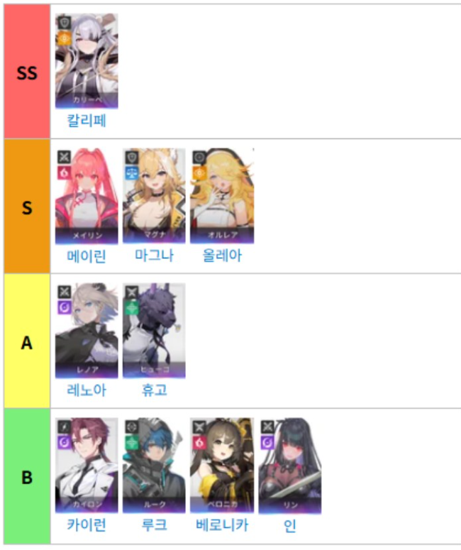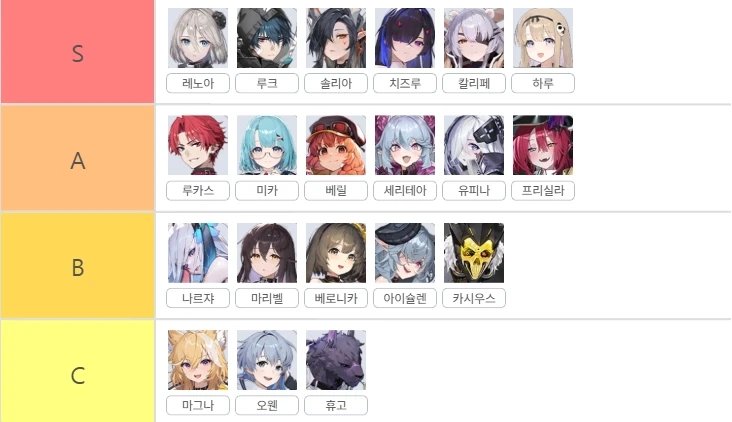 정식 출시 전까지는 정확하게는 알 수 없지만, 곧 출시 후 티어표를 다시 정리하도록 하겠습니다.