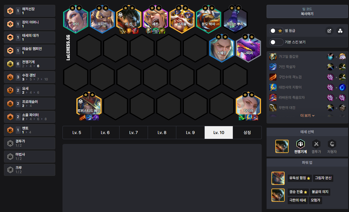 트페가 2성을 찍으면 리 신의 파워 업을 세트로 옮겨주는 것이 효율적입니다.