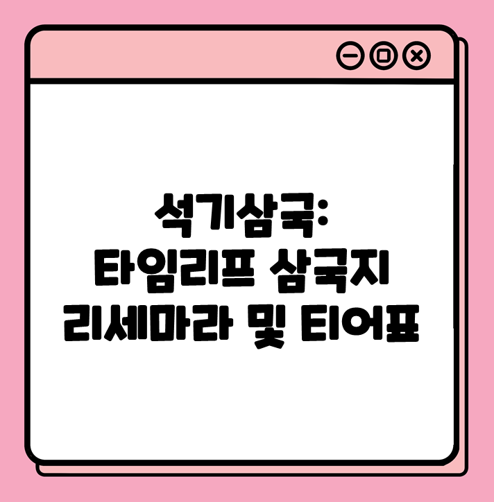 이번 글에서는 2025년 11월 기준 최신 티어표, 리세마라 방법, 그리고 추천 장수 조합 및 꿀팁까지 한눈에 정리했습니다.