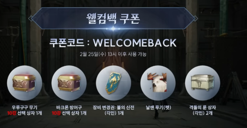 | WELCOMEBACK | ~2026년 3월 25일(수) 정기점검 전까지 |