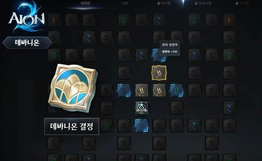 데바니온 노드는 데바니온 결정을 사용해 스킬 트리를 확장하는 성장 방식입니다.