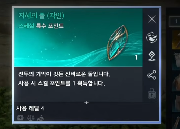 지혜의 돌을 사용하면 스킬 포인트를 추가로 획득할 수 있습니다.
