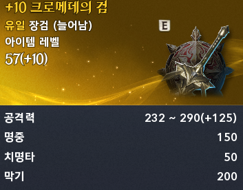 - 40% 확률 내에서 무작위 유일 무기 등장