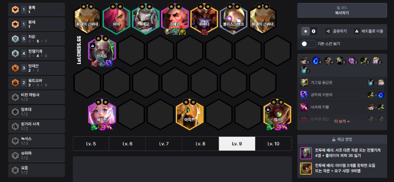 전쟁기계 신지드 세라핀 덱은 초반 자운 기반 챔피언 확보 → 8레벨 파워 → 후반 안정적 유지력이라는 확실한 운영 패턴이 있는 강력한 조합입니다.