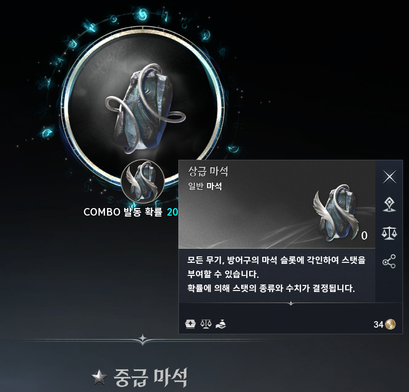 - 중급 마석 제작 : 연금 레벨 20 이상