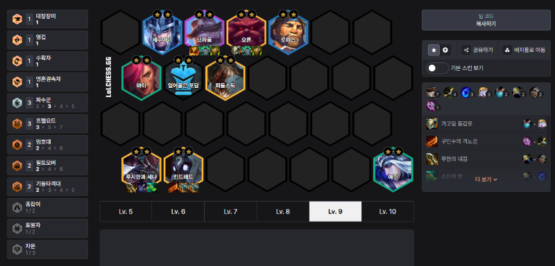 파수꾼 킨드레드 루시안 덱은 난이도가 높은 편이지만, 올바른 빌드업과 레벨 운영만 해낸다면 후반 5단계 유닛 경쟁력을 통해 높은 순위를 노릴 수 있는 덱입니다.