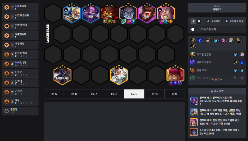 비전 마법사 기반의 요들 밸류 덱은 빠르고 안정적인 9레벨 전환, 그리고 최종 조합의 강력한 밸류 확보가 핵심인 고난이도 덱입니다.