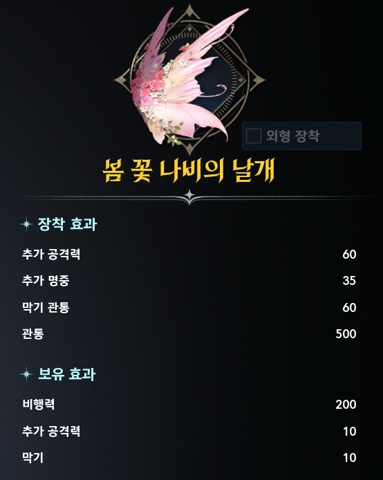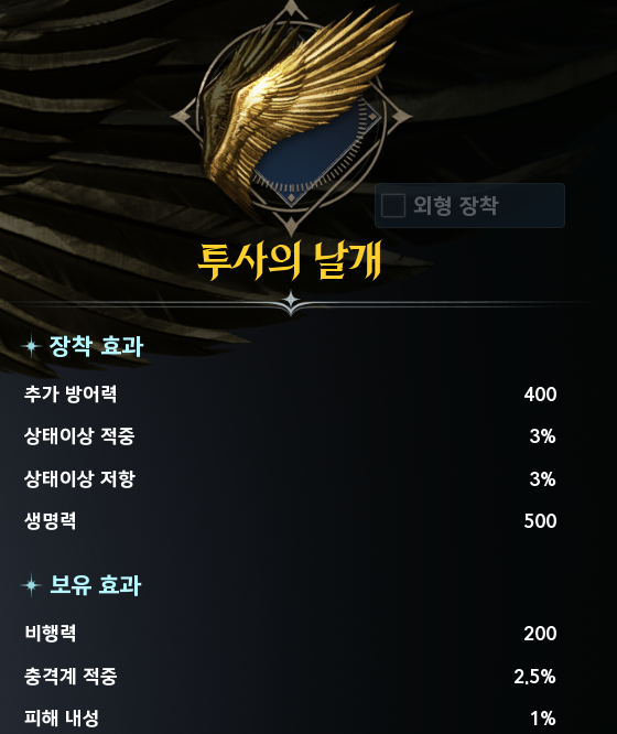 👉 현재 기준으로 PVP 최상급 날개라고 봐도 무방합니다.
